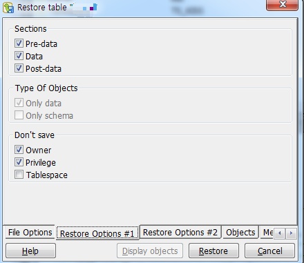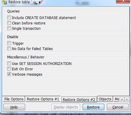 해당 테이블을 눌러 Backup 바로 밑에 Restore..를 선택하였습니다.