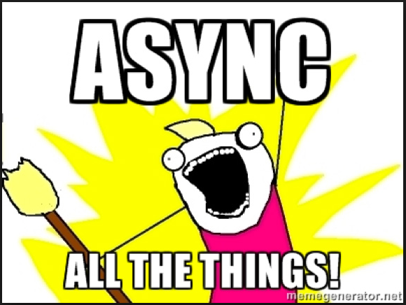네트워크 요청은 느릴 수 있습니다. 이미지 요청도 느릴 수 있습니다. 하지만 감사하게도 서버 요청들은 비동기 함수인 AJAX를 통해 할 수 있습니다. 만일 이러한 네트워크 요청들이 동기화 함수들을 통해서 이뤄졌다고 한다면, 무슨 일이 벌어질까요? 먼저 컴퓨터가 네트워크 요청을 받는다면 그 요청은 또 다른 컴퓨터나 기계와 같은 어떤 서버로 갈 것입니다. 네트워크 응답은 응답자의 사정에 따라 아주 많이 느려질 수 있습니다. 그 동안, 우리가 만약 CTA(Call To Action) 버튼이나 렌더링이 필요한 무언가를 클릭한다면 스택이 막혀있기 때문에 어떠한 반응도 일어나지 않을 것입니다. 루비와 같은 멀티 스레드 언어에서는 이러한 일도 잘 해결될 수 있습니다. 하지만 싱글 스레드 언어인 자바스크립트는 스택에 쌓인 함수들에서 어떠한 값을 반환하기 전까지는 불가능합니다. 그 웹페이지는 브라우저가 아무 것도 할 수 없기 때문에 완전히 망가질 것입니다. 우리가 엔드 유저를 위해 유동적인 UI를 원한다면 이러한 방법은 그리 이상적이지 않습니다. 우리는 어떻게 싱글 스레드로 이상적인 환경을 만들 수 있을까요?