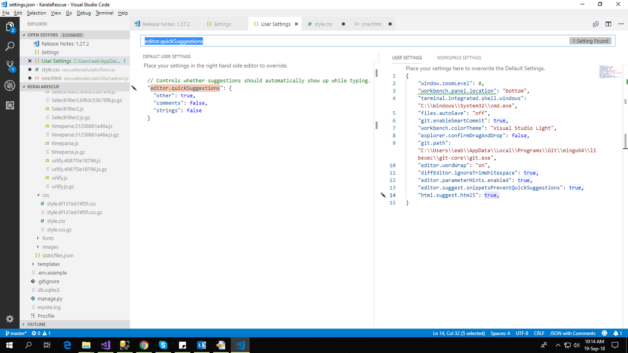 Click on Edit in settings.json